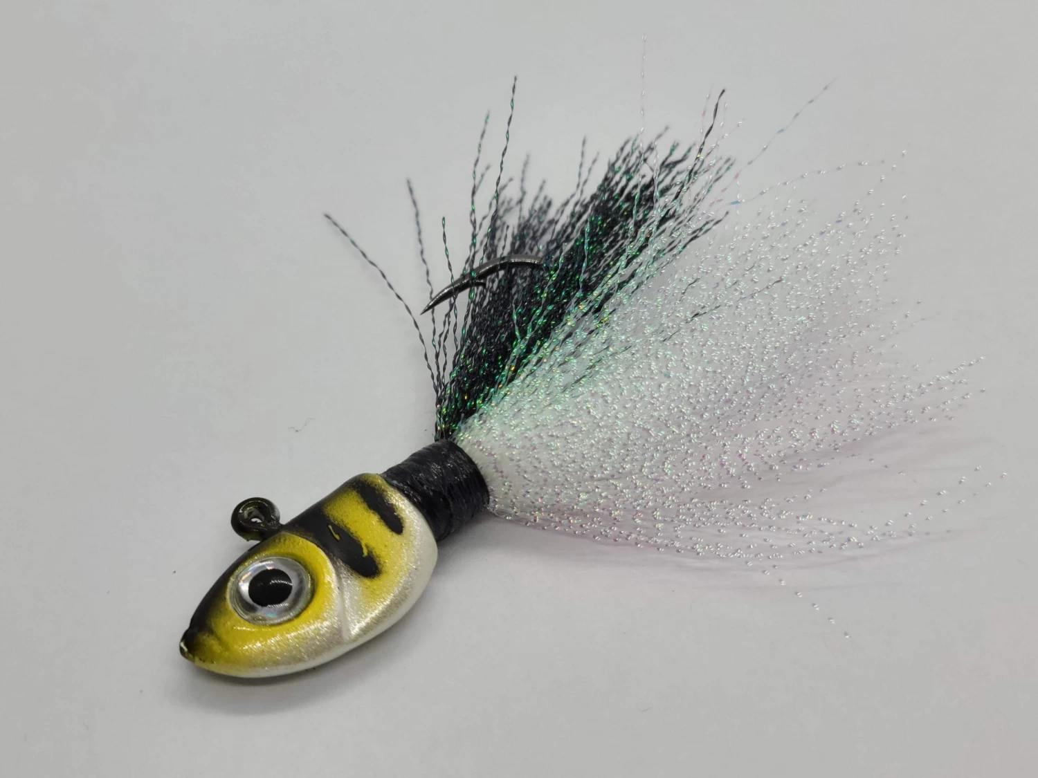 BnR Tackle Walleye Jigs are fish head-shaped hair jigs hand-tied with reflective Midge flash material. Incredibly versatile, they’re designed for both vertical jigging and cast and retrieve, and can be fished either on their own or paired with a nightcrawler, plastic worm, or swimbait.