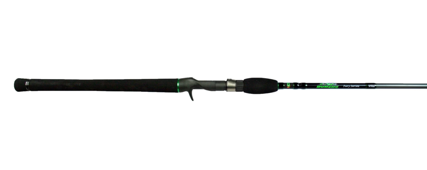 Dobyns Fury Casting Rods are a series of 1-piece bass baitcasting rods that are arguably the best “bang-for-your-buck” when it comes to tournament bass rods. Designed by bass tournament veteran Gary Dobyns, Fury Series rods feature well-balanced, high modulus graphite blanks that provide ample strength and sensitivity. These blanks are adorned with carefully selected high-quality guides attached to the rod with strong yet sensitive Kevlar wrapping.