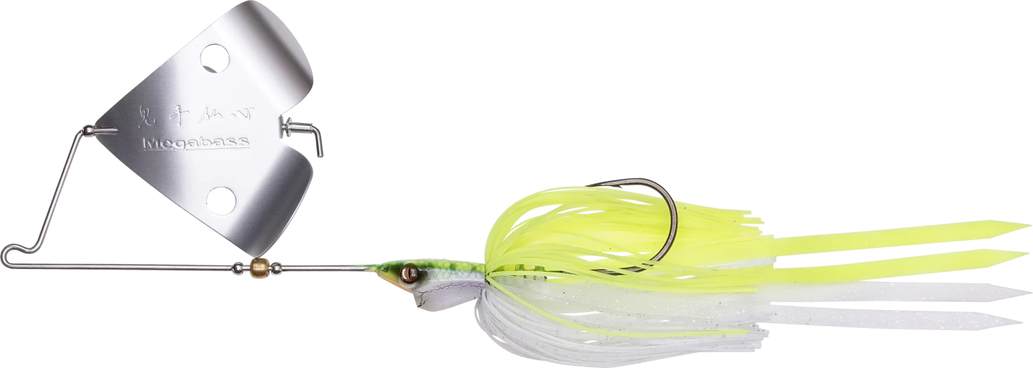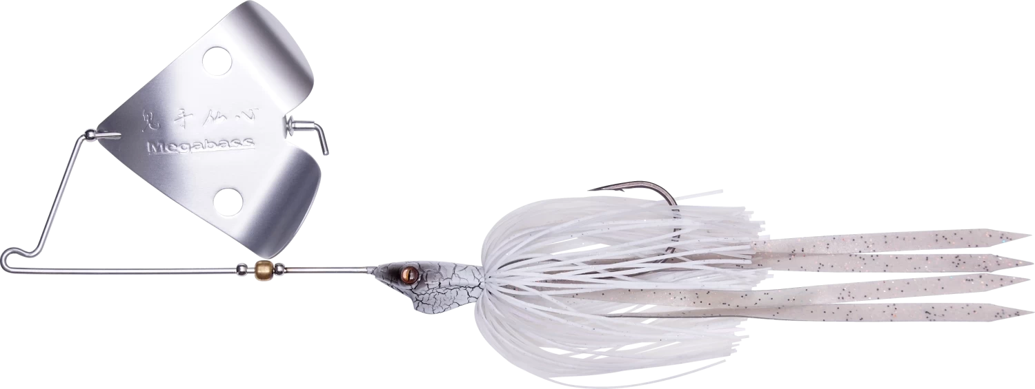 The Megabass Jamaica Boa is a 1/2 ounce wire buzzbait made with thick gauge stainless steel wire and a long silicone skirt. It has a head design that resembles a flat v with a slightly cupped mouth (see image below), which delivers nimble recoveries from deflections and an uncanny bushwhacking ability as it moves through vegetation, which