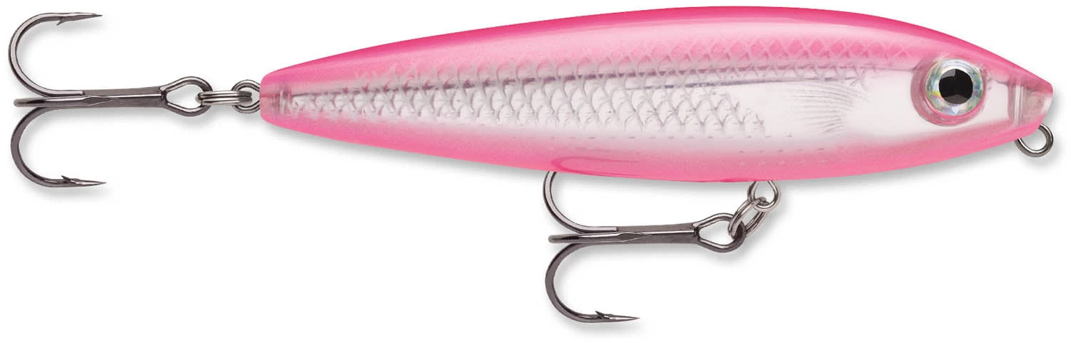 The Rapala Skitter Walk 08 Topwater is a topwater walker. The Skitter Walk 08’s superior construction assures a perfect swimming bait right-out-of-the-box. Toss it out. Pump. Reel. Pump. Reel. You’re “Walking-the-Dog”. Weighted tail keeps bait in natural position even at rest. Large internal rattles create a rhythmic side-to-side motion-and-sound combination that imitates wounded or fleeing baitfish. All feature 3D holographic eyes and you can choose from appetizing painted or chrome color patterns. All are equipped with VMC® black nickel treble hooks. Available in more than 20 different colors.